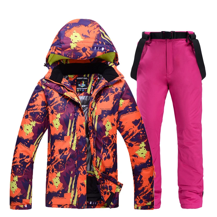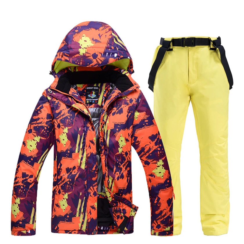 Best Deal Women Men Colorful Print Hooded Ski Suit Snowboard Jacket Windproof Waterproof Winter Clothing Skii
