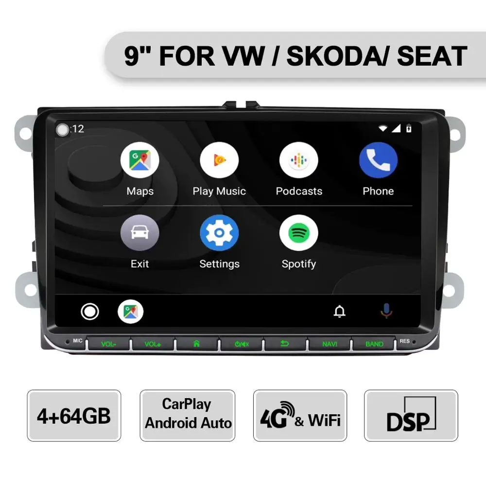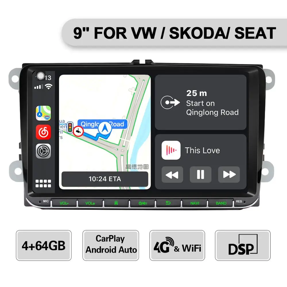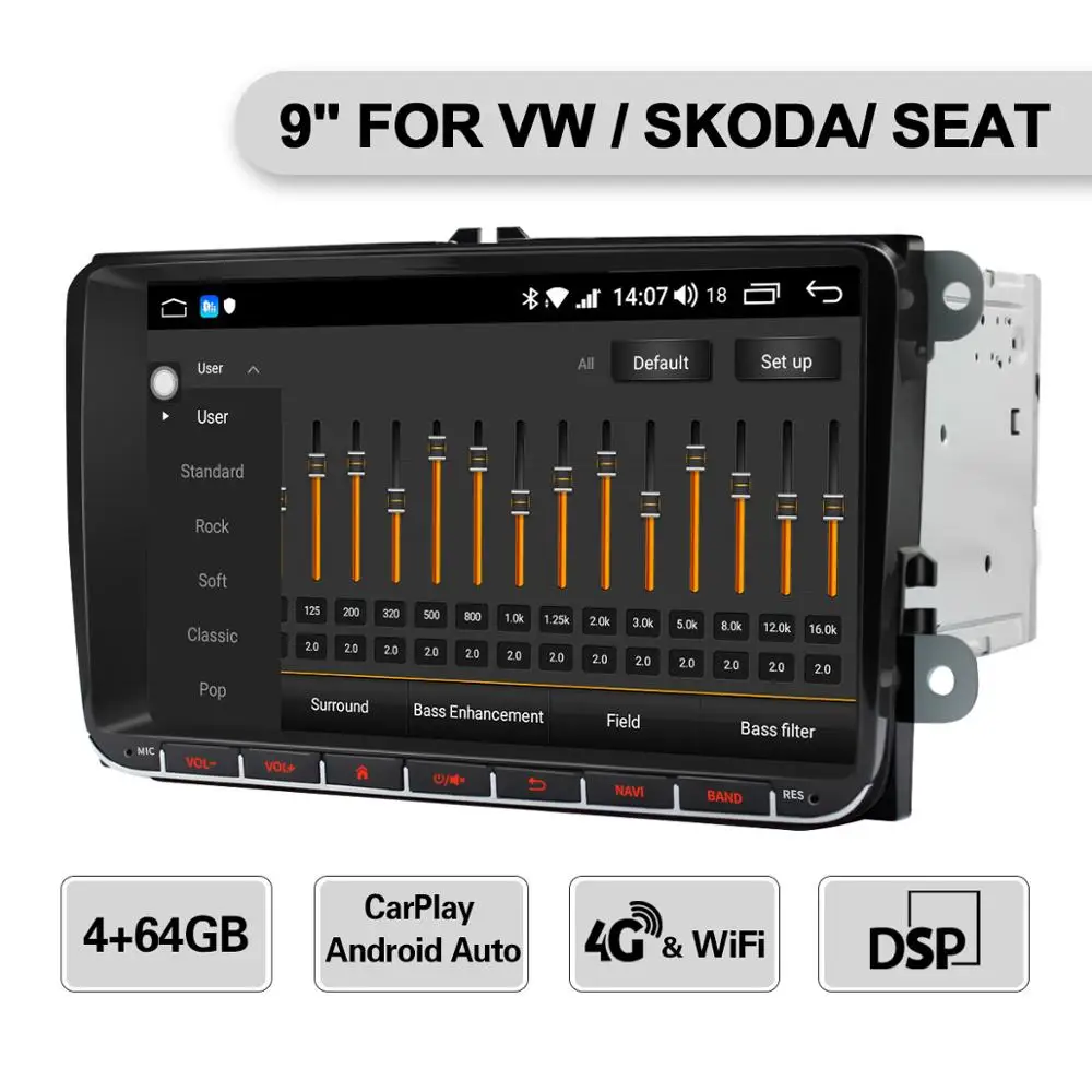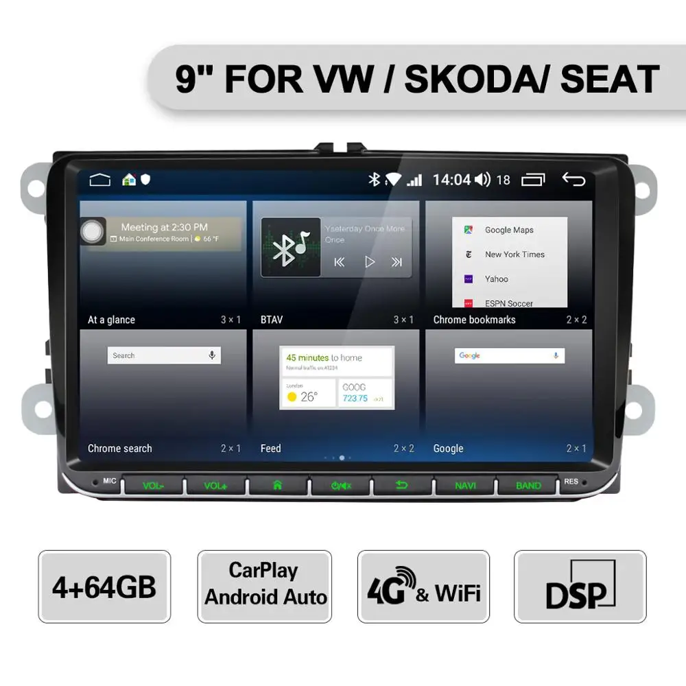 9"4GB+64GB Head Unit Android 8.1 Car Radio Stereo Built-in 4G Modem DSP For Volkswagen VW Skoda POLO GOLF PASSAT NO DVD Player